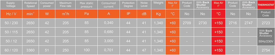 • All fans can be manufactured to operate at 60 Hz frequency, without significant change in the remaining characteristics.